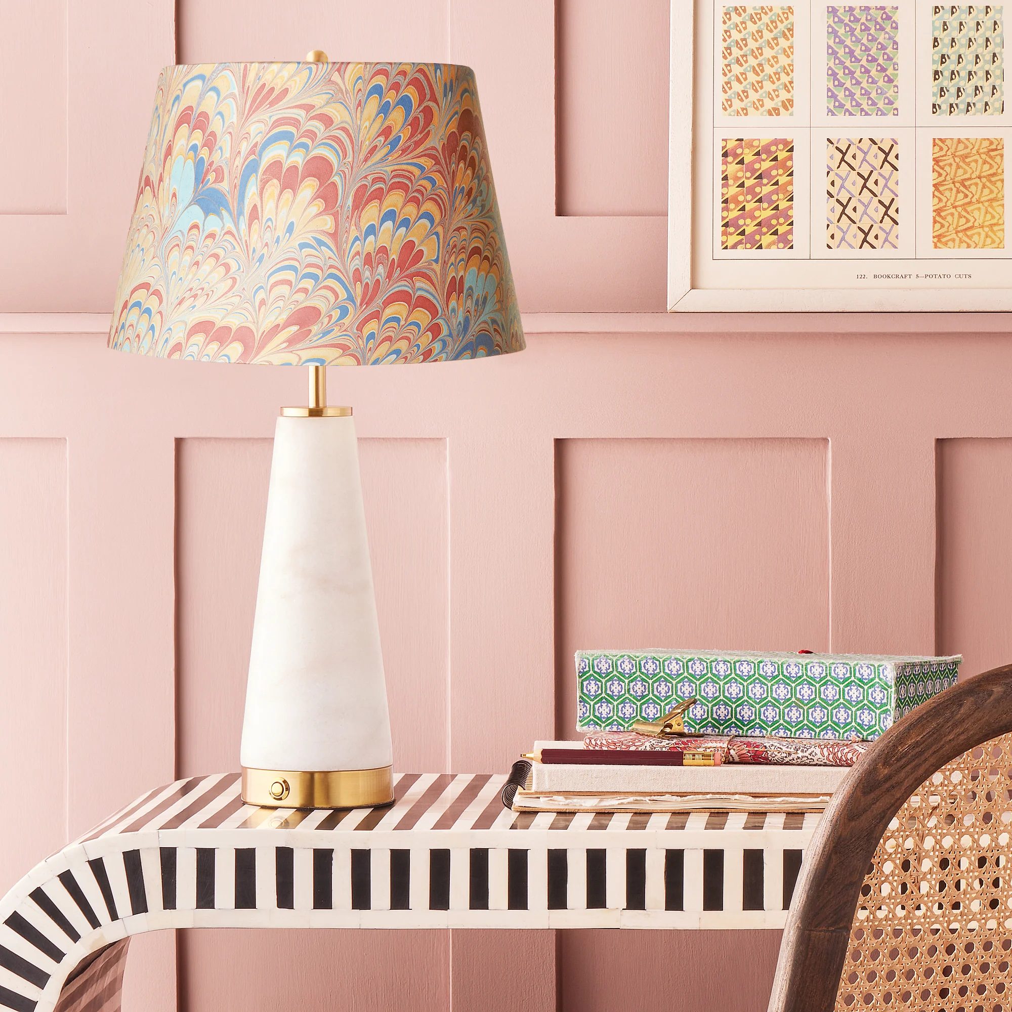 12 inch tall tapered shade in gold piave hand made marbled paper
