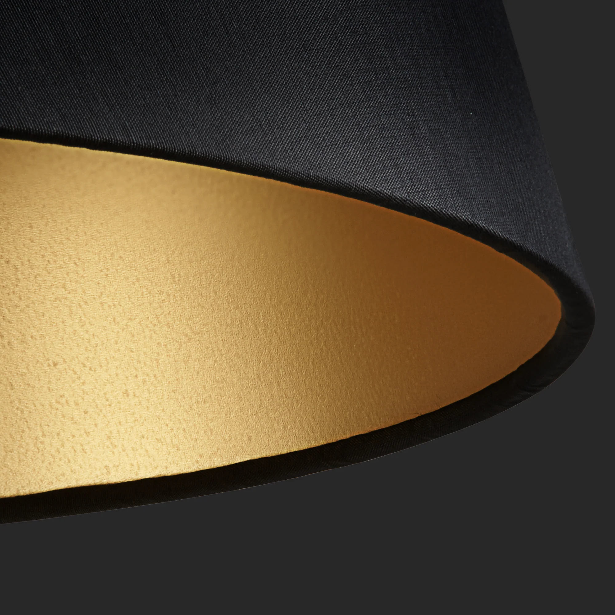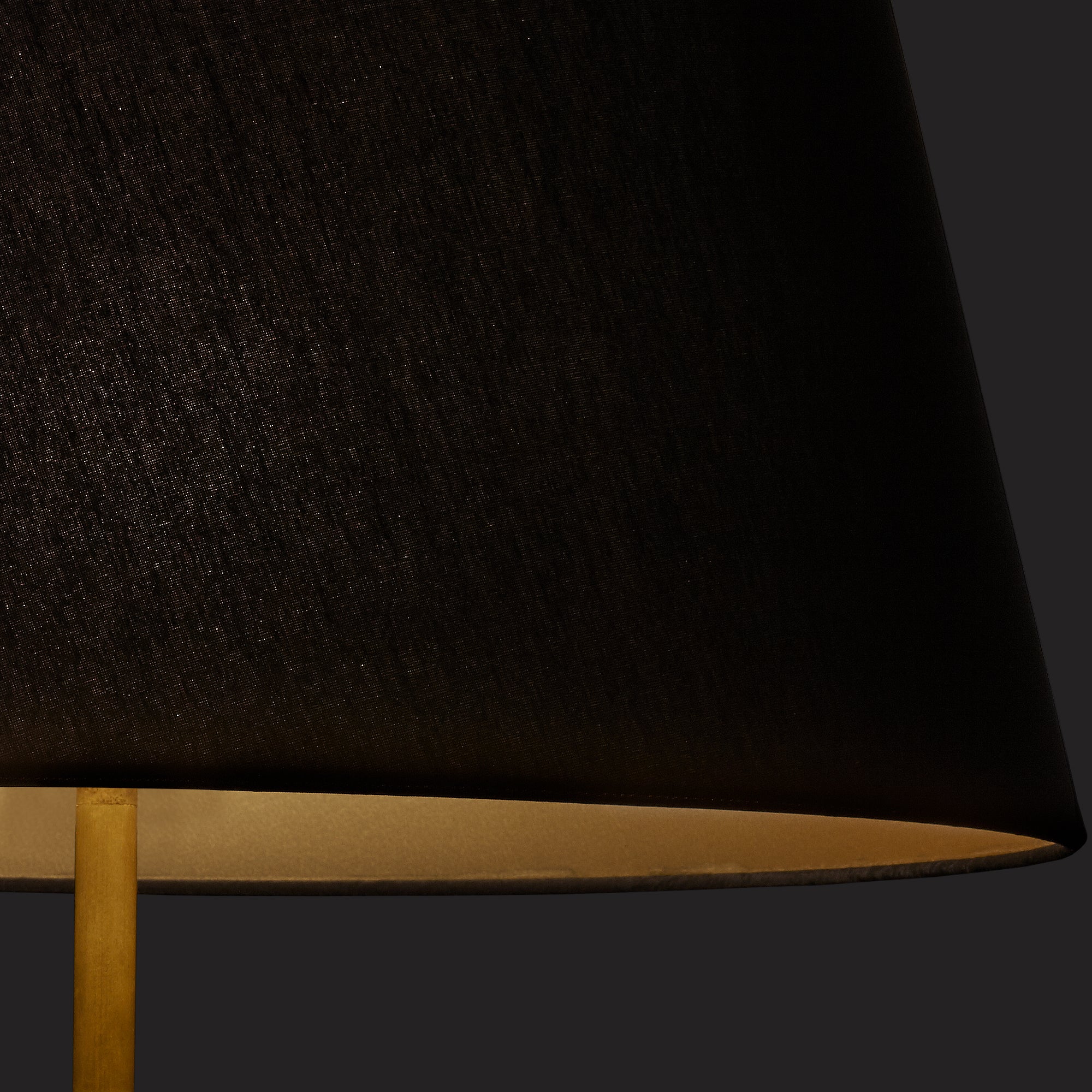 A empire shade in our very civilised black silk, with muted gold lining. Nice glow. Classic.