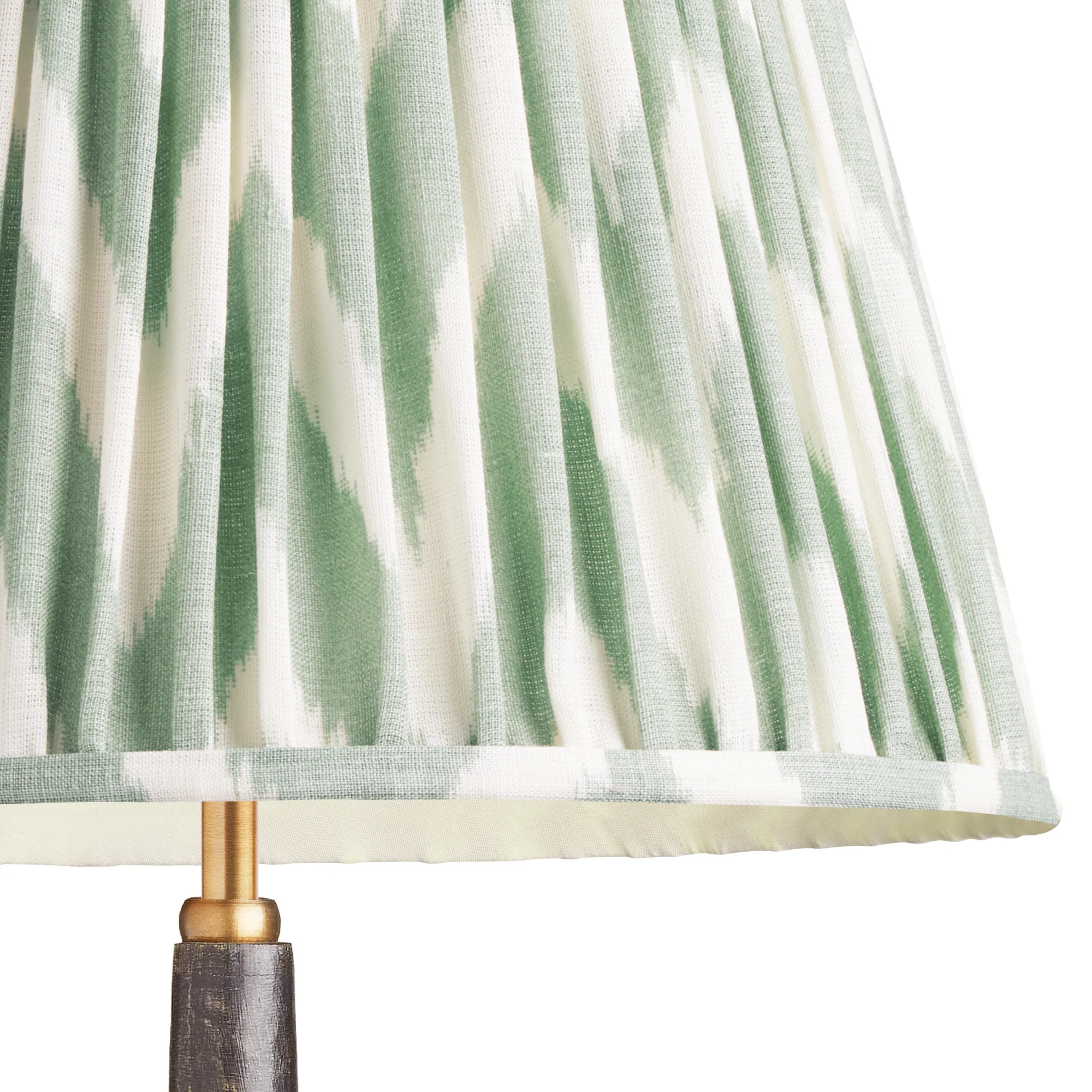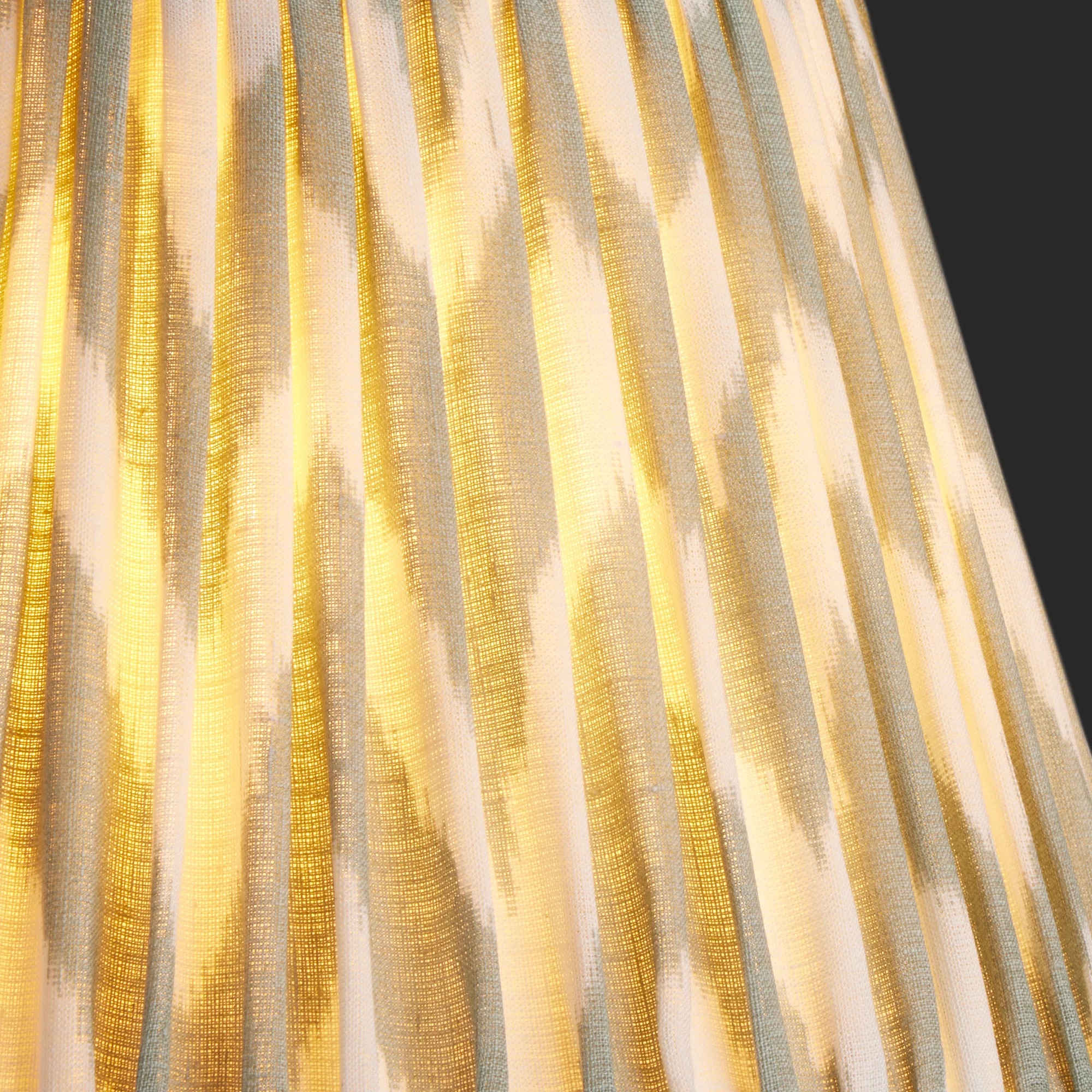 A gathered straight empire shade in a softly spoken, beautiful zig-zag ikat pattern. We've called it eau-de-nil as green just didn't cut it! Hand-made from soft natural linen with a warm cream fabric lining. Simple, elegant, timeless and very classy.
