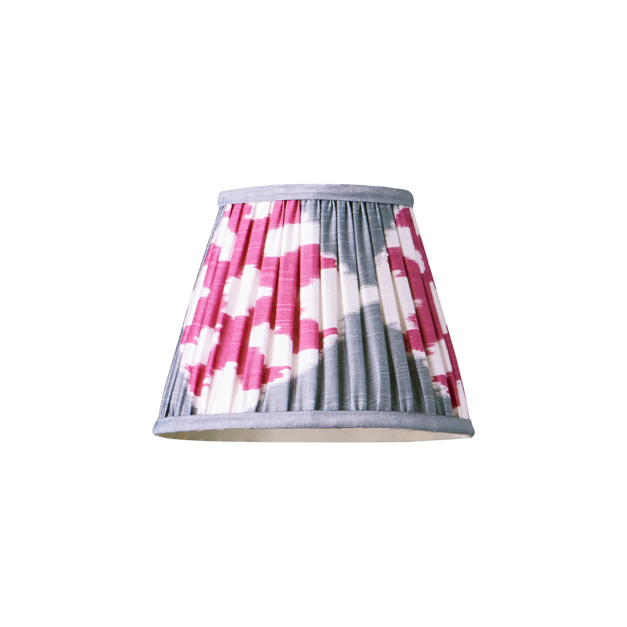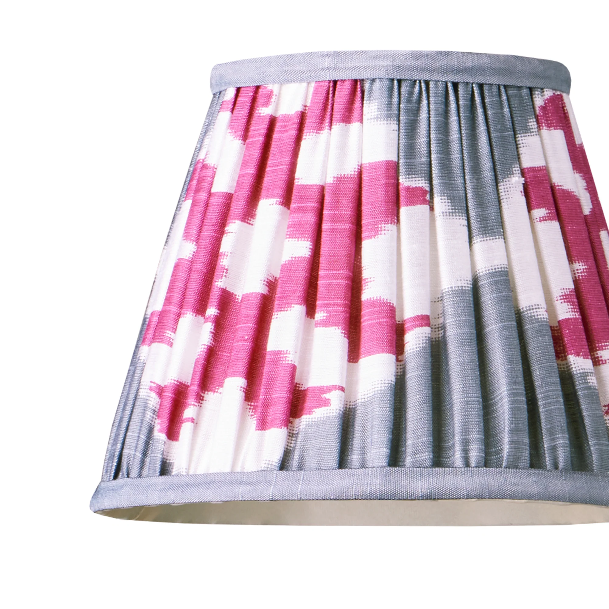 7 inch pendant lamp shade in darjee ikat pink and pewter silk