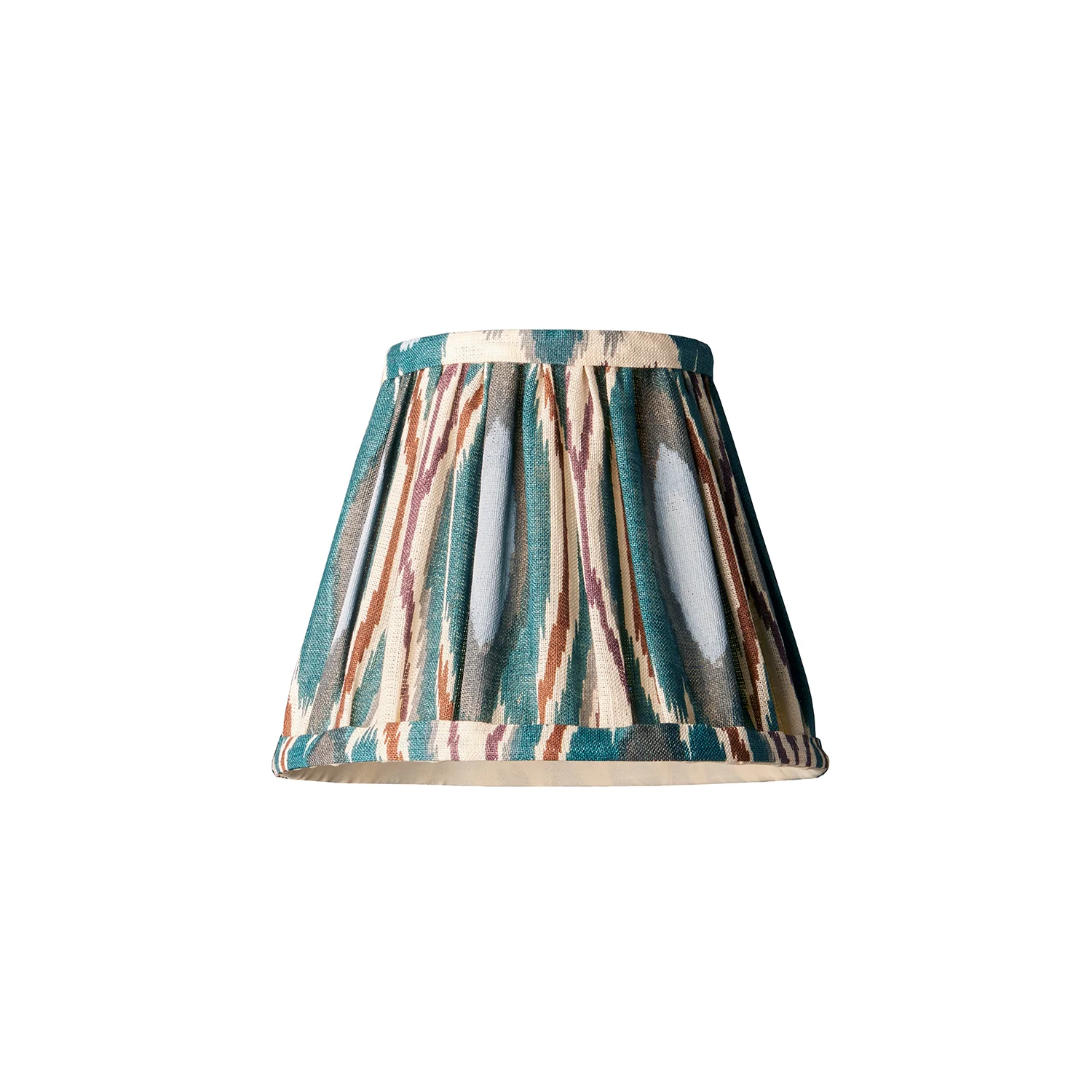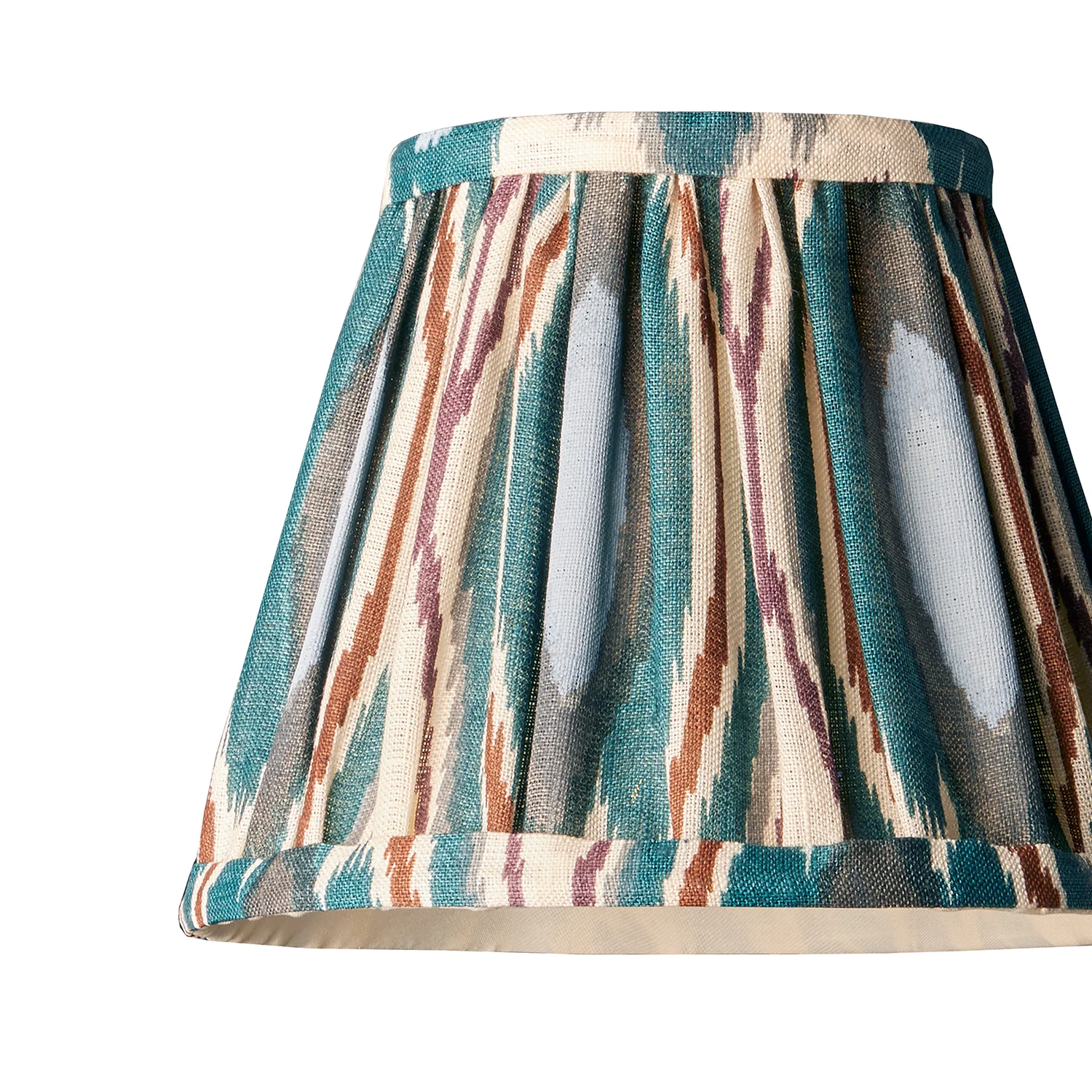 A gathered pendant shade in a beautiful ikat pattern that we think borrows a few ideas from the colors of medieval heraldry - anyway, its rather lovely and it's hand-made from soft natural linen. With a warm cream fabric lining. Class.