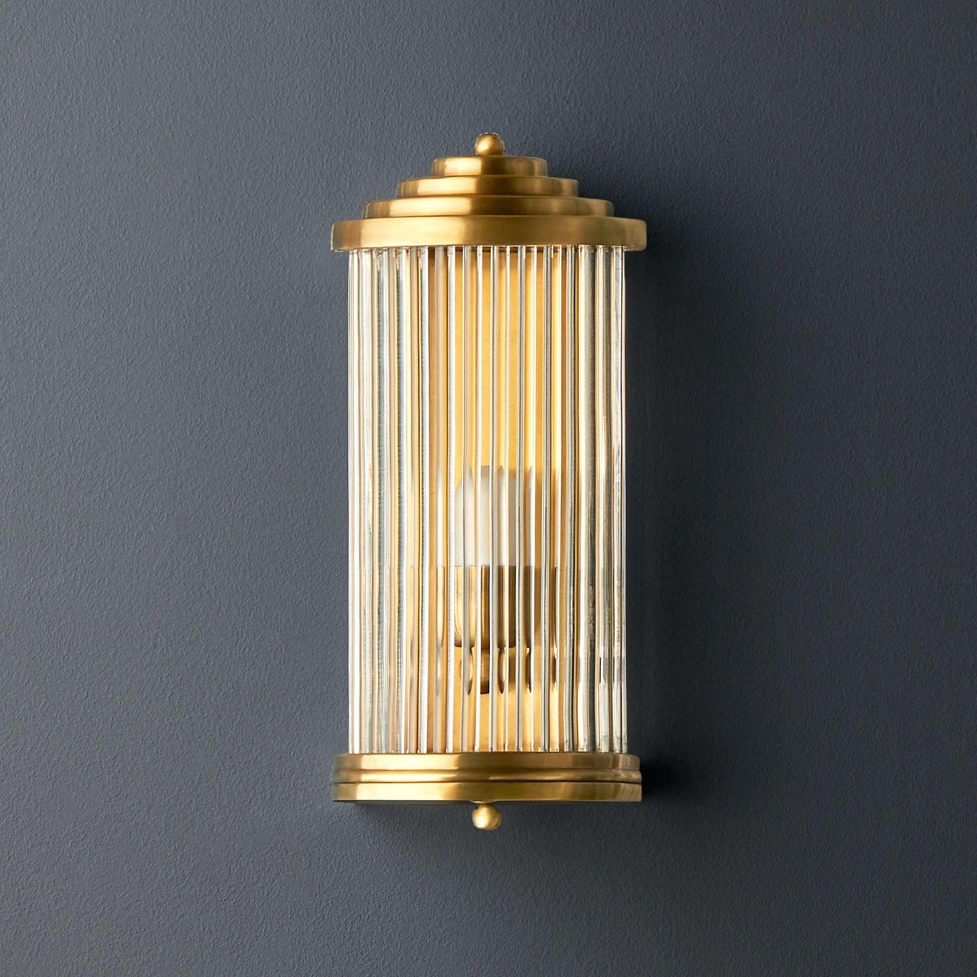 Smaller, and perhaps more discerning that it's namesake, our "baby" Roddy wall sconce packs a mighty punch. The stepped brass "hat" is a glorious feature. These lights are as at home in the bathroom as in the hall.