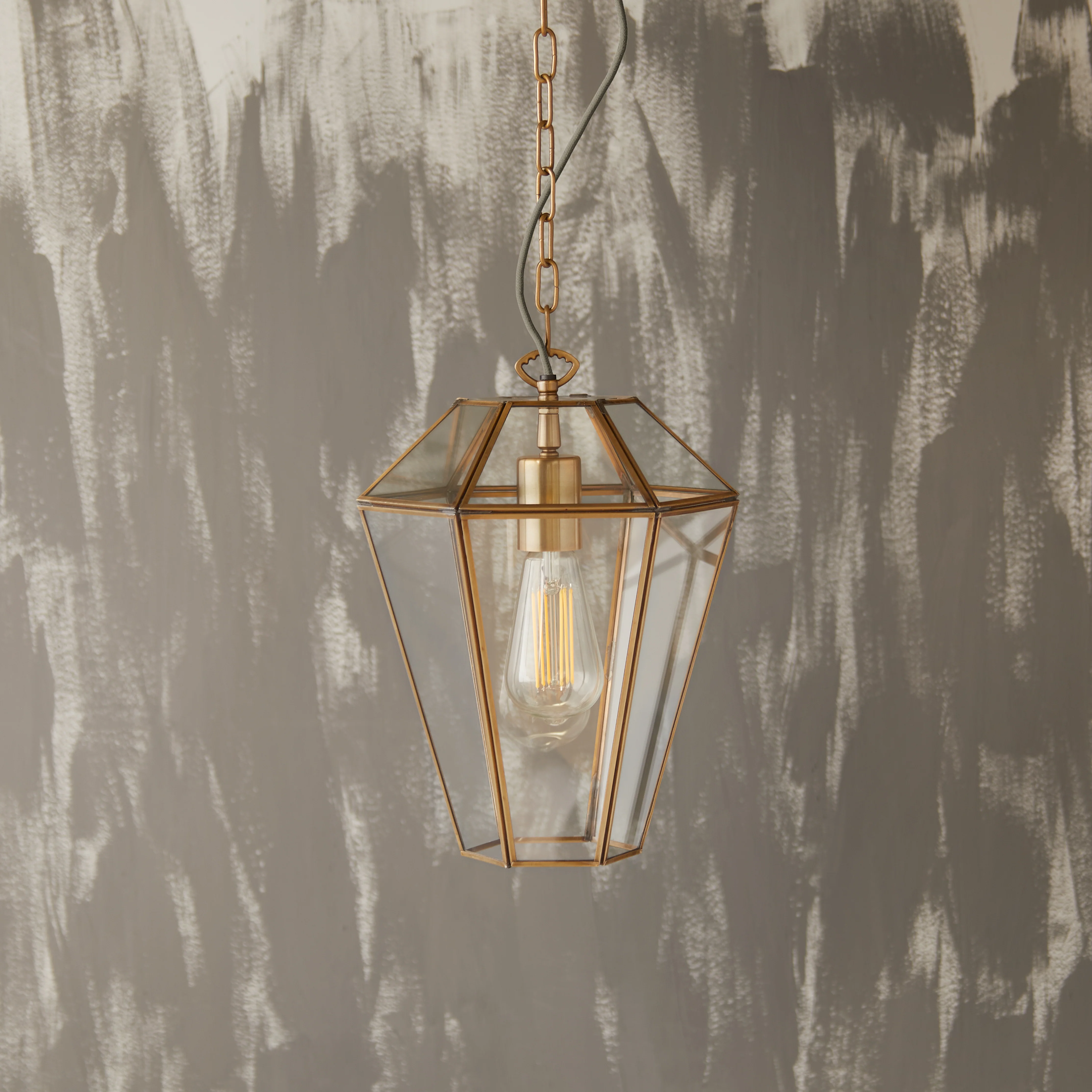 This pendant is all about the elegant tapering. We’ve taken a long time and chewed a number of pencils to get this one right, so that it’s neither squat nor lanky. As long as you have enough height then it will hang handsomely in a corridor or a hallway. And since it doesn’t take up too much airspace, it’ll also make a great impact in pairs or trios over a kitchen island. Lovely antique brass metalwork between the glass panels.