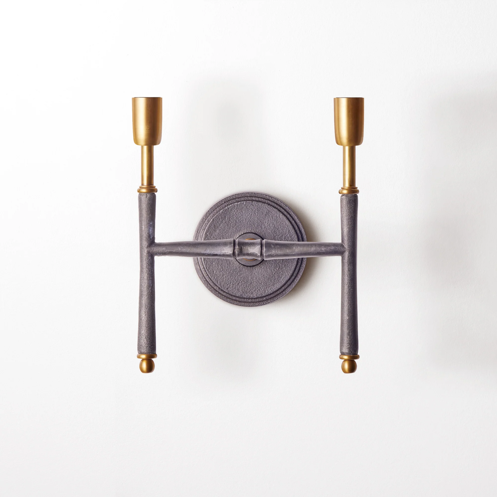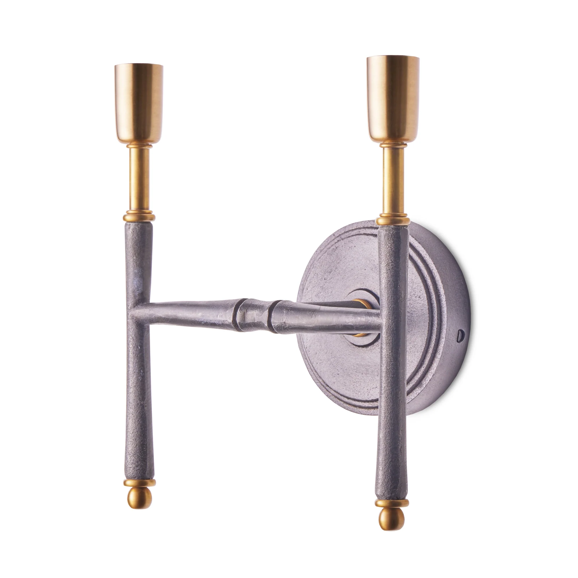 Double Twiglet wall fixture in aluminium and antiqued brass