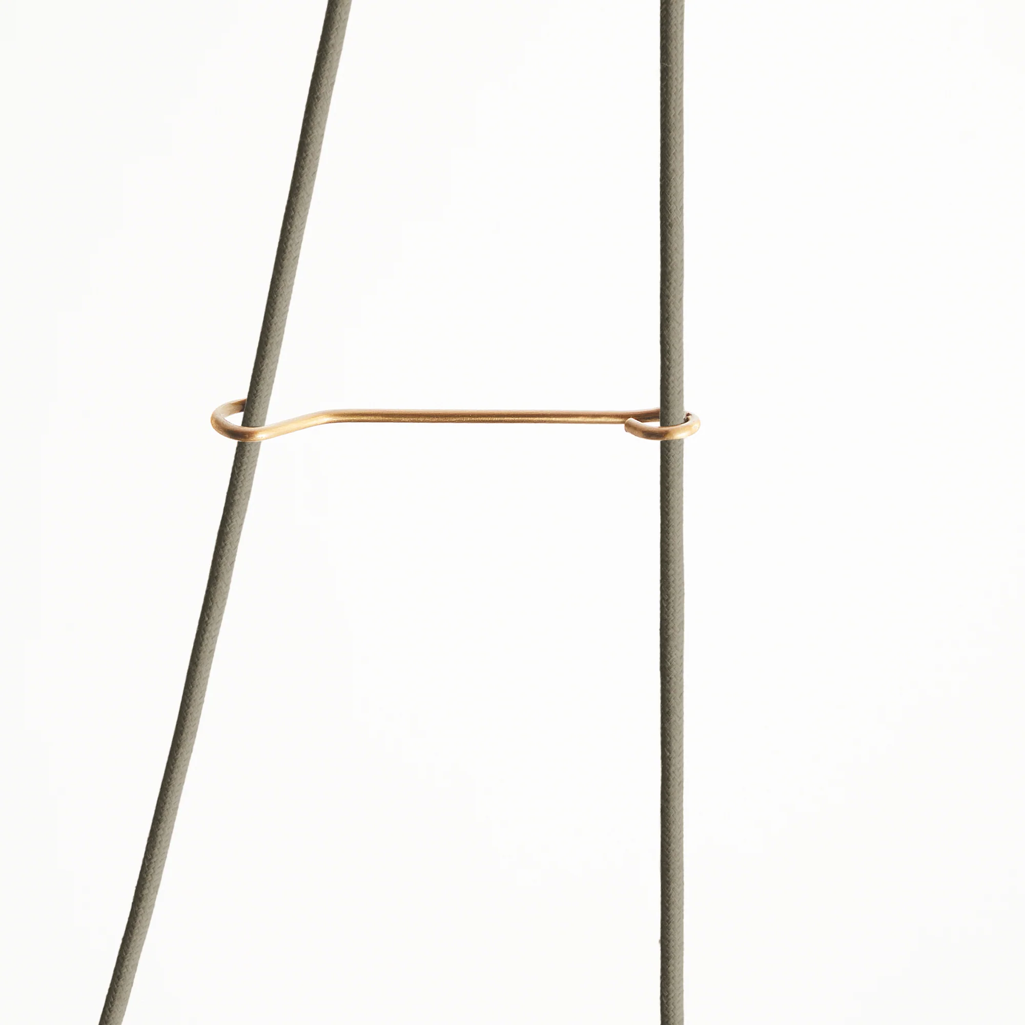 In perfect equilibrium. Weight the brass egg (it unscrews) to create the ideal balance for the shade you choose. Then you are able to play to your heart's delight with the array of brass wheels and flex to find the ideal height for your light. A little bit Caractacus Potts, but brilliantly efficient.