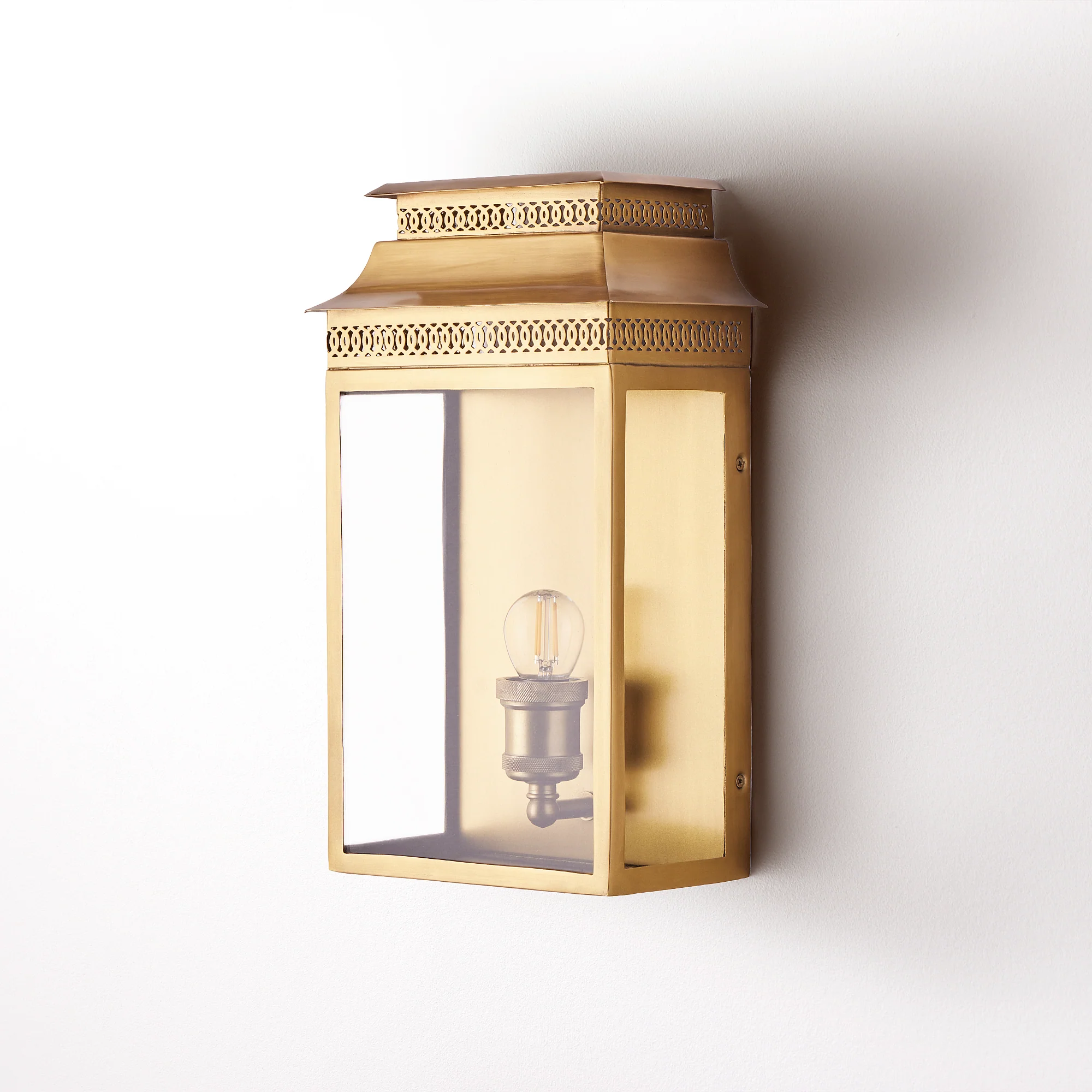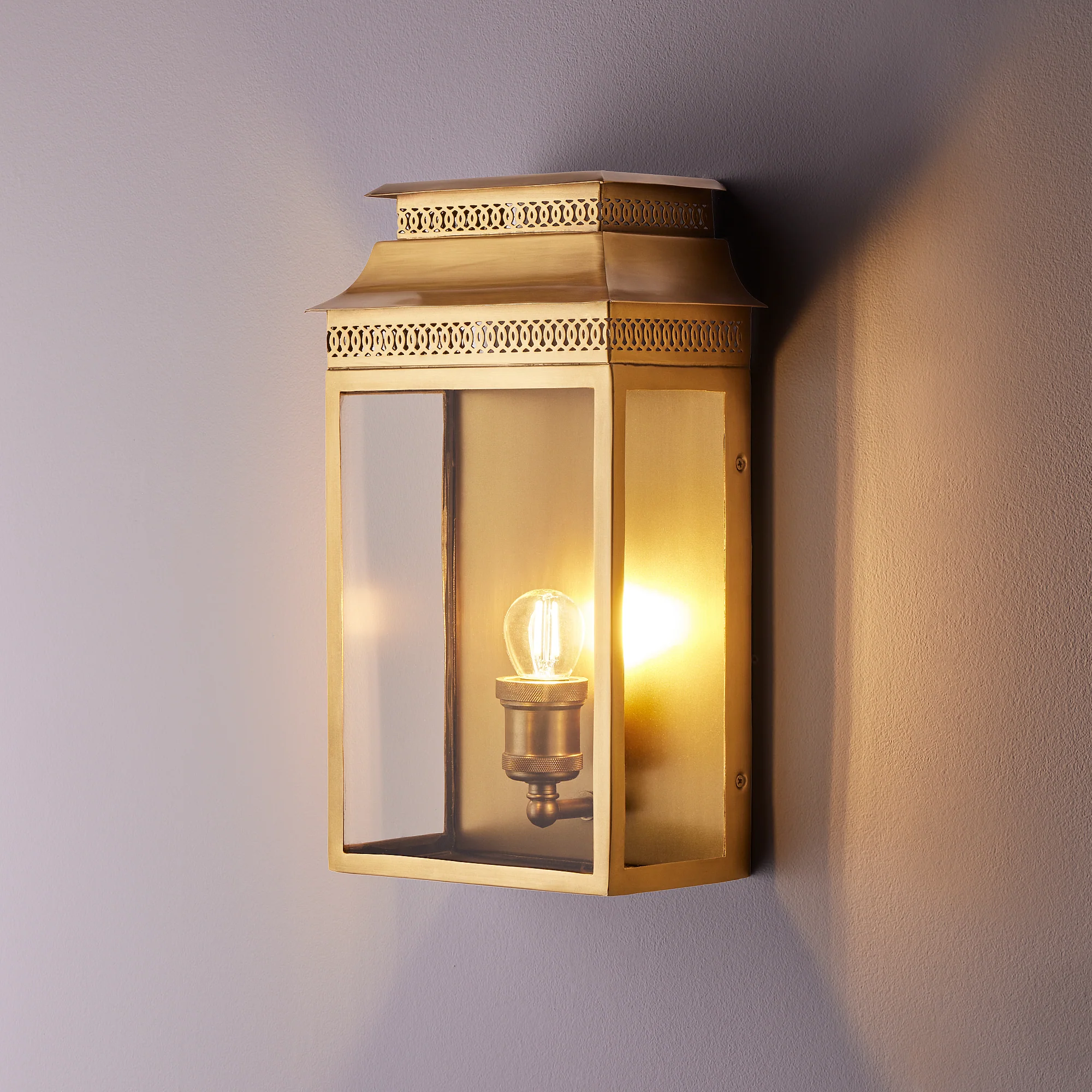 Just a touch of the pagoda here, without getting out of control. Lighting up a door, especially a front door, is a tricky process - it's all about first impressions - our Hastings light is certainly decorative, but nevertheless understated and quietly beautiful. Made from solid, heavyweight brass, meaning that once installed , it'll happily stay there forever - rust proof and waterproof - understated hassle free style.