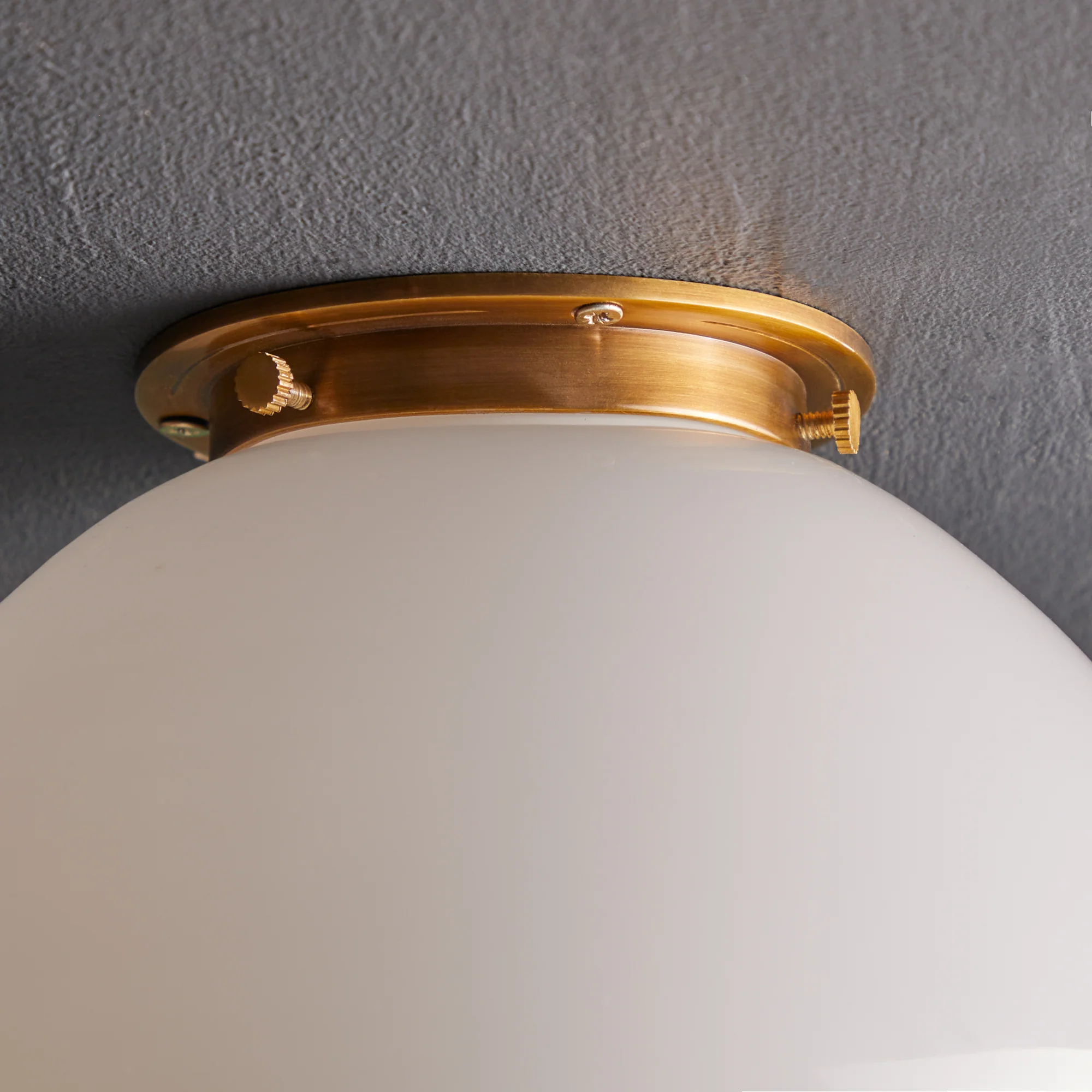 -70%Larger Plumb flush mount fixture in antiqued brass—