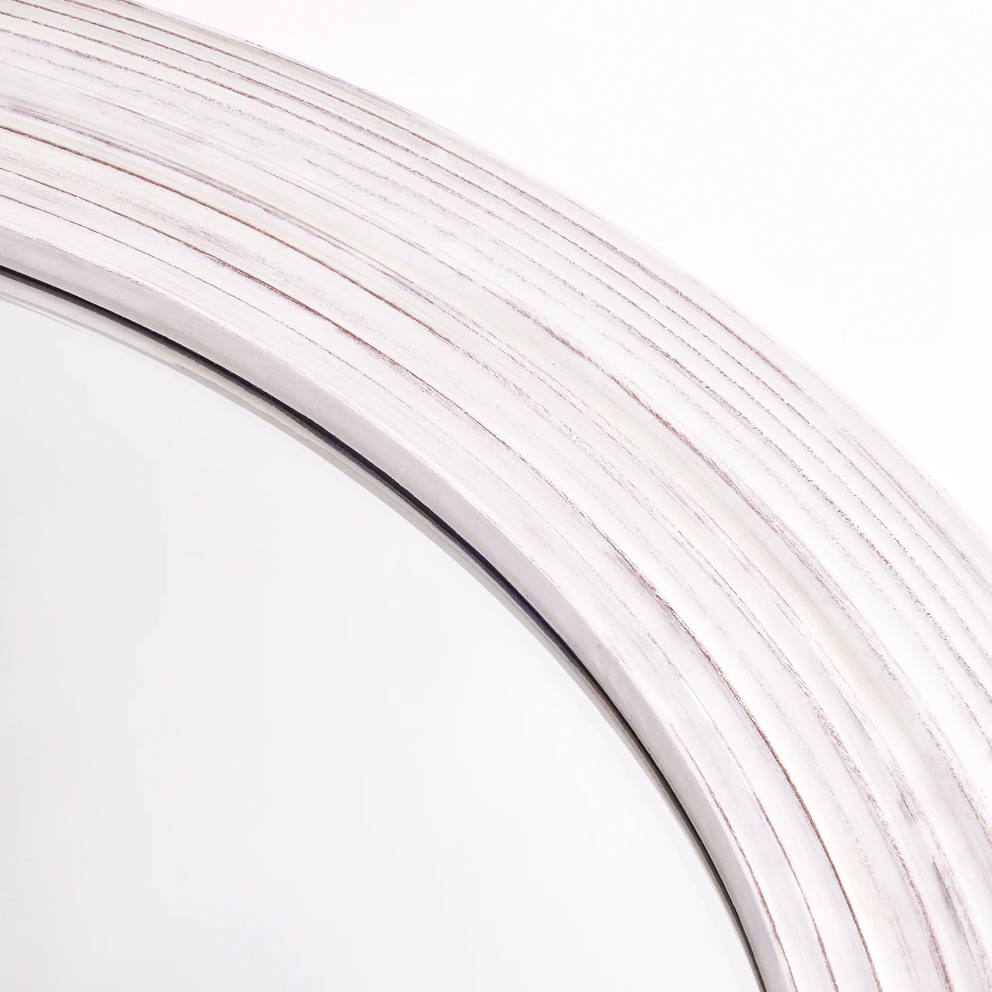 This startlingly lovely mirror is lifted by the paint effect. First the turned wooden framed is lacquered and then many of the edges are sanded off to just reveal the wood beneath. Finally a clear lacquer is applied to seal it. Lots of depth and interest.