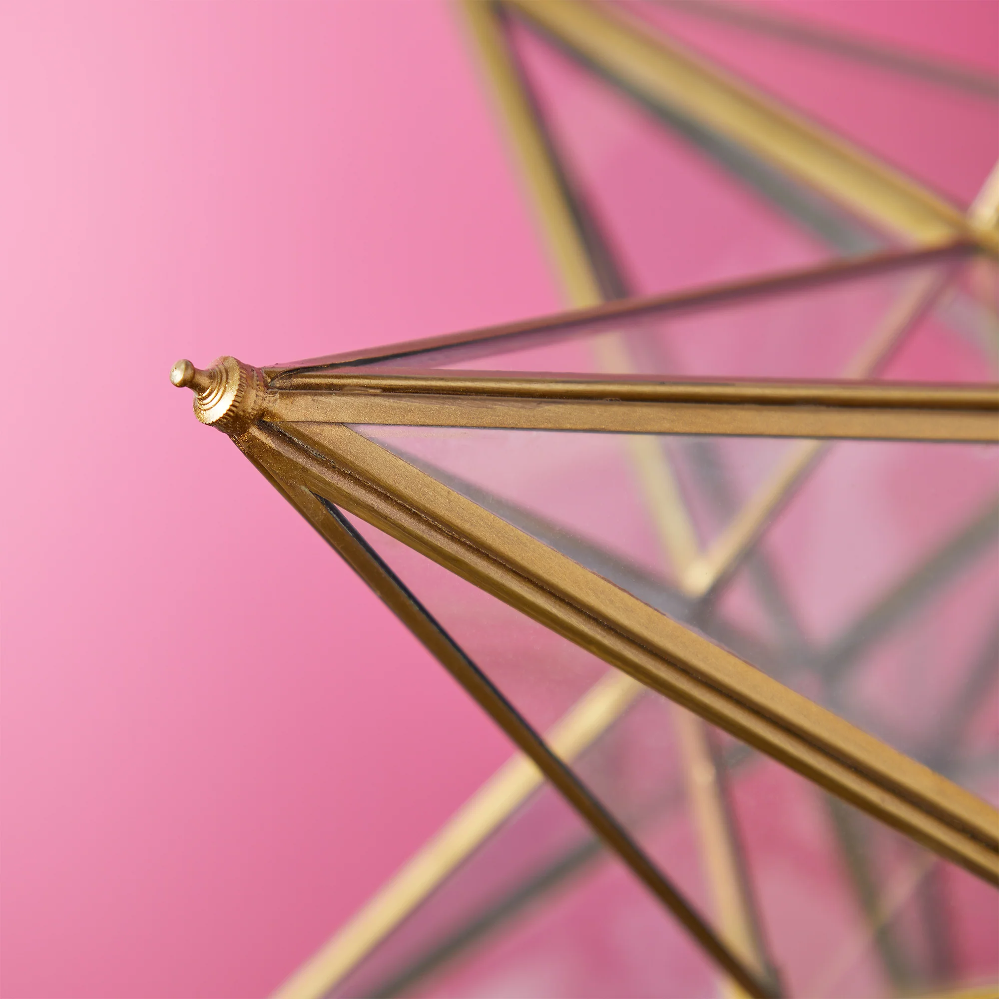 Twinkle Twinkle little….star pendant. Our Stella pendant light is an elegant addition to any space, be it bedroom, hallway or staircase. It features antique brass work paired with clear glass, creating a timeless and sophisticated look. The star shape is a charming centerpiece and shines light beautifully throughout the room.