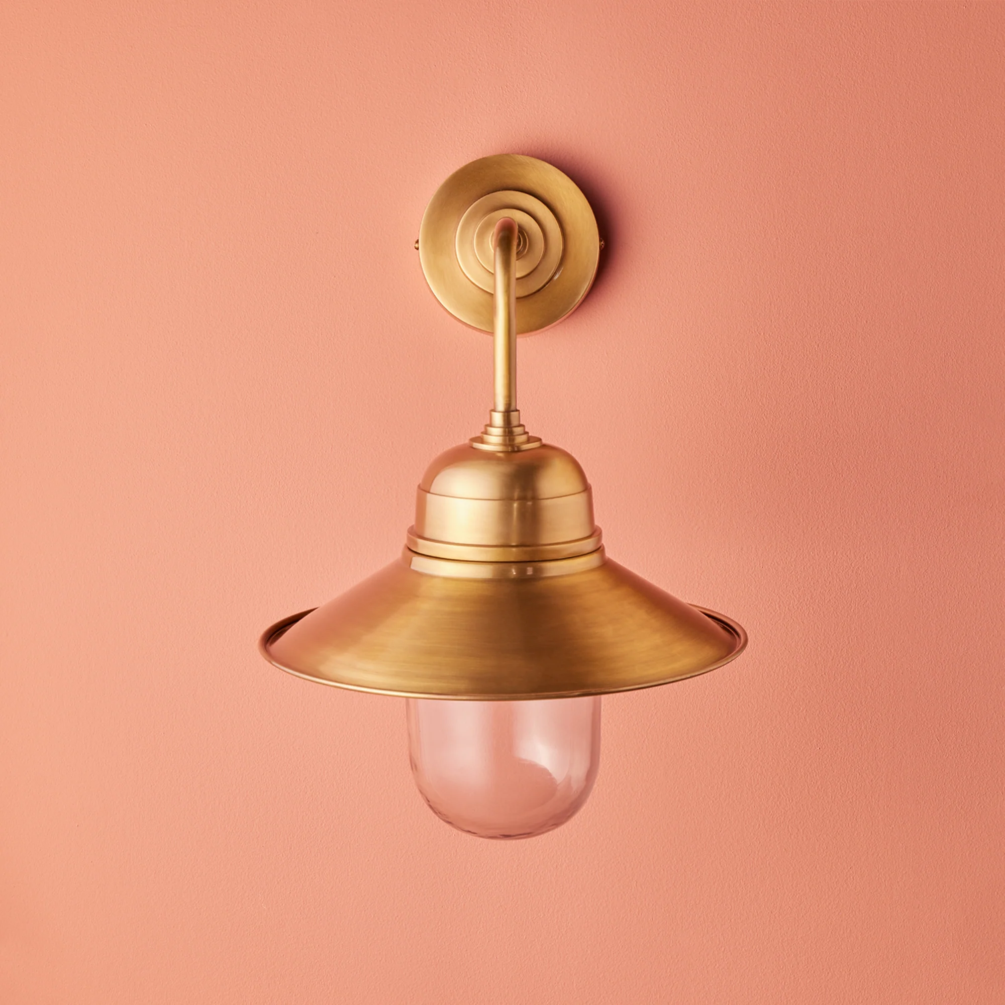 Pure brass, solid and rated for use outdoors but equally suitable in bathrooms and corridors, the Plover is timeless. With only a teeny little hat, it'll stop the light leaking upwards but will still give plenty of ambient light. It's not hard to imagine it burning brightly through the winter storms above a windswept doorway.