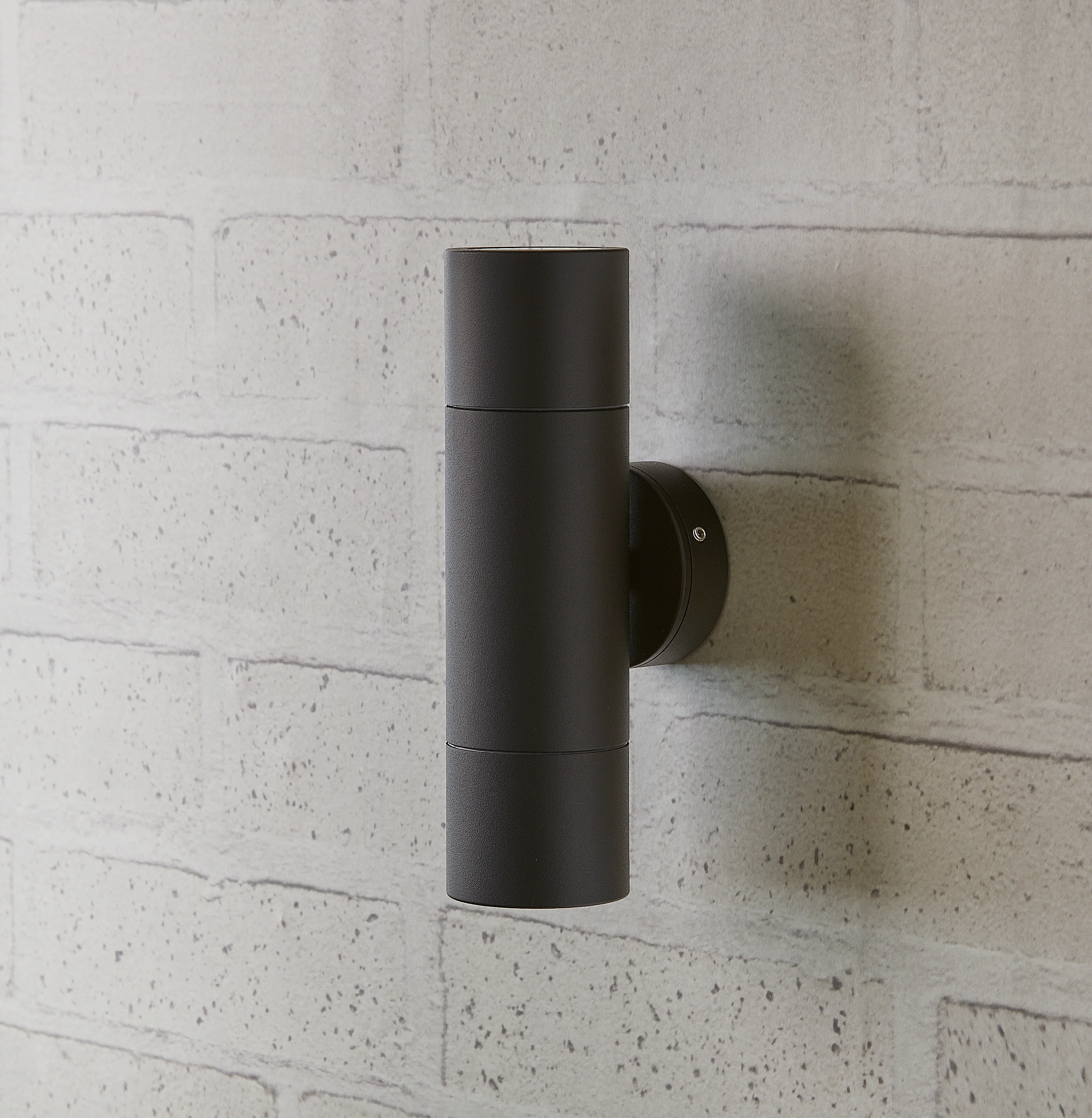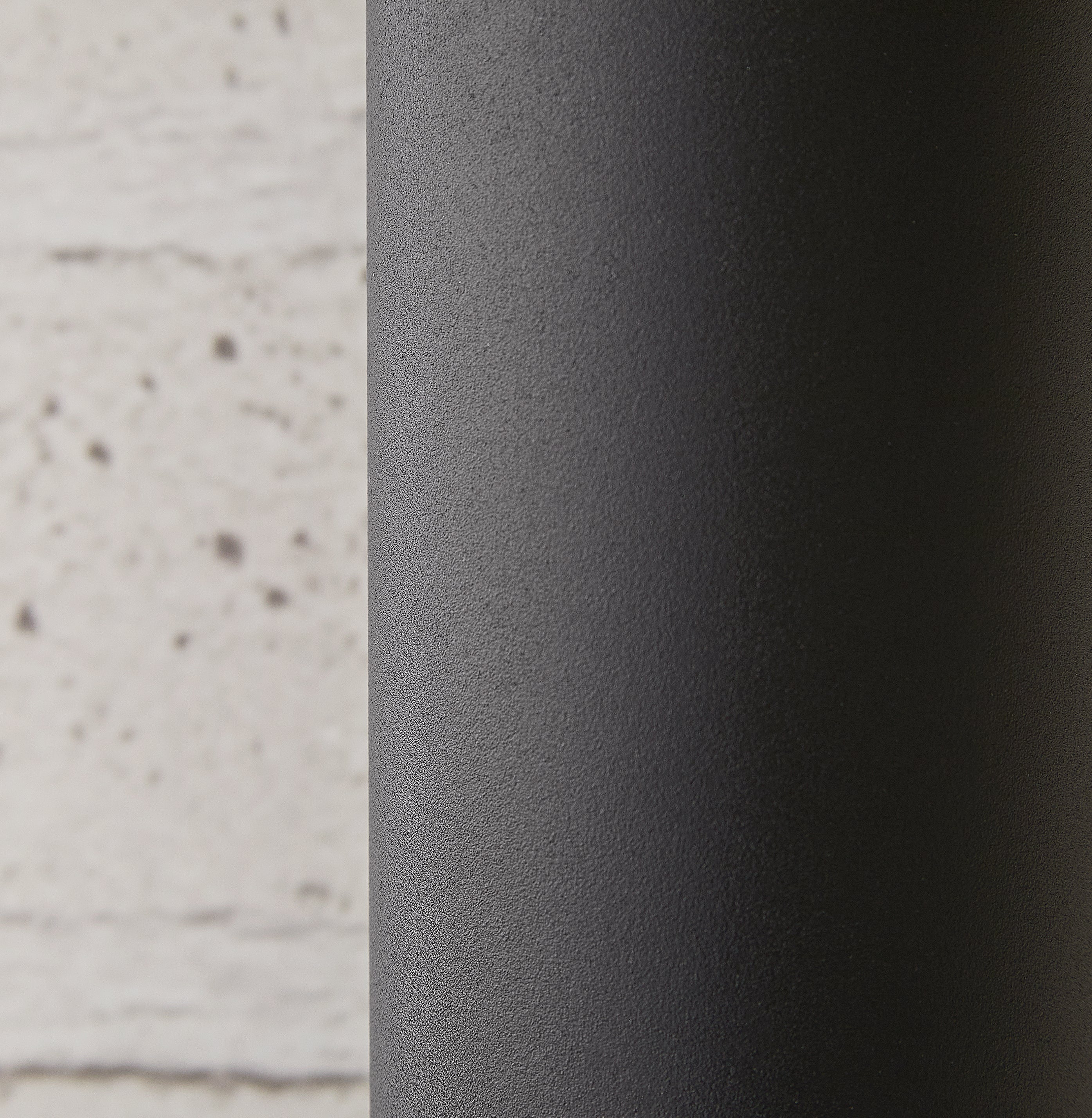 This is a lovely cylindrical design which is simple, discreet and contemporary. It throws a gentle wash of light on the wall, up and down. Great for outdoor use as it offers a good level of ambient light without any glare, and especially suitable for highlighting stonework or foliage. We think it’s also a great candidate for inside as well, in corridors and for a contemporary feel in bathrooms. This version is powder coated aluminium, which is rated for outdoors, but we wouldn’t recommend it for coastal or other harsh environments. These fixtures are dimmable when used with a suitable dimmable bulbs.