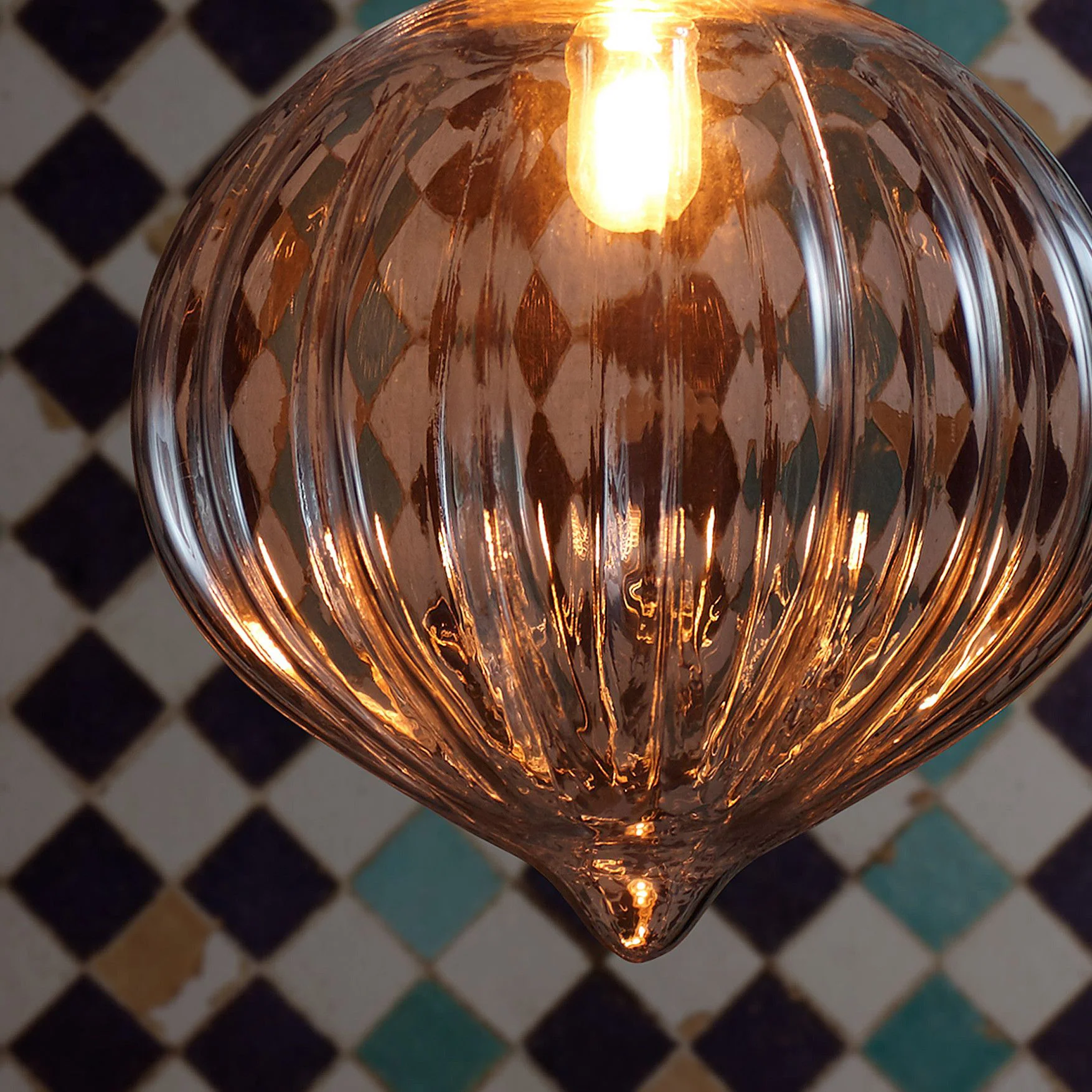 Teardrop, inverted rose, Mongolian street light - however you describe this, the Aquila has a true Art Deco chic, and is a very striking light. Despite what one or two people have suggested, this light is unquestionably made from glass...blown by mouth, into a mould, by a very skilled craftsman - fact!