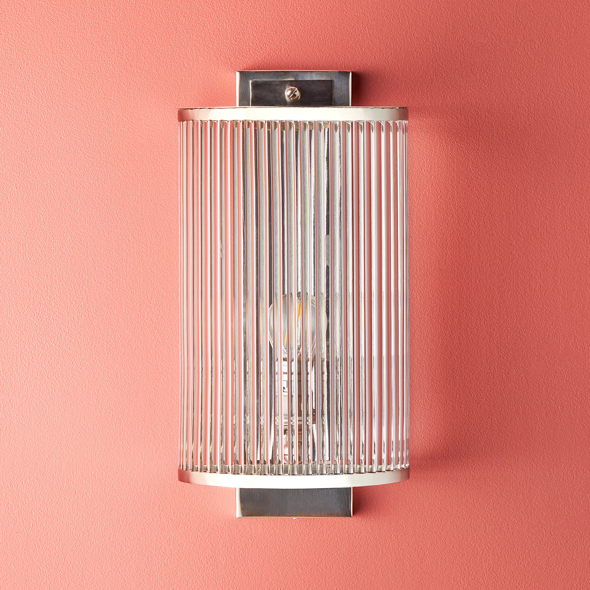 Art Deco in feel this roddy wall sconce is a neat semi-circular wall sconce bordered by twenty glass rods, that let the light sparkle through.