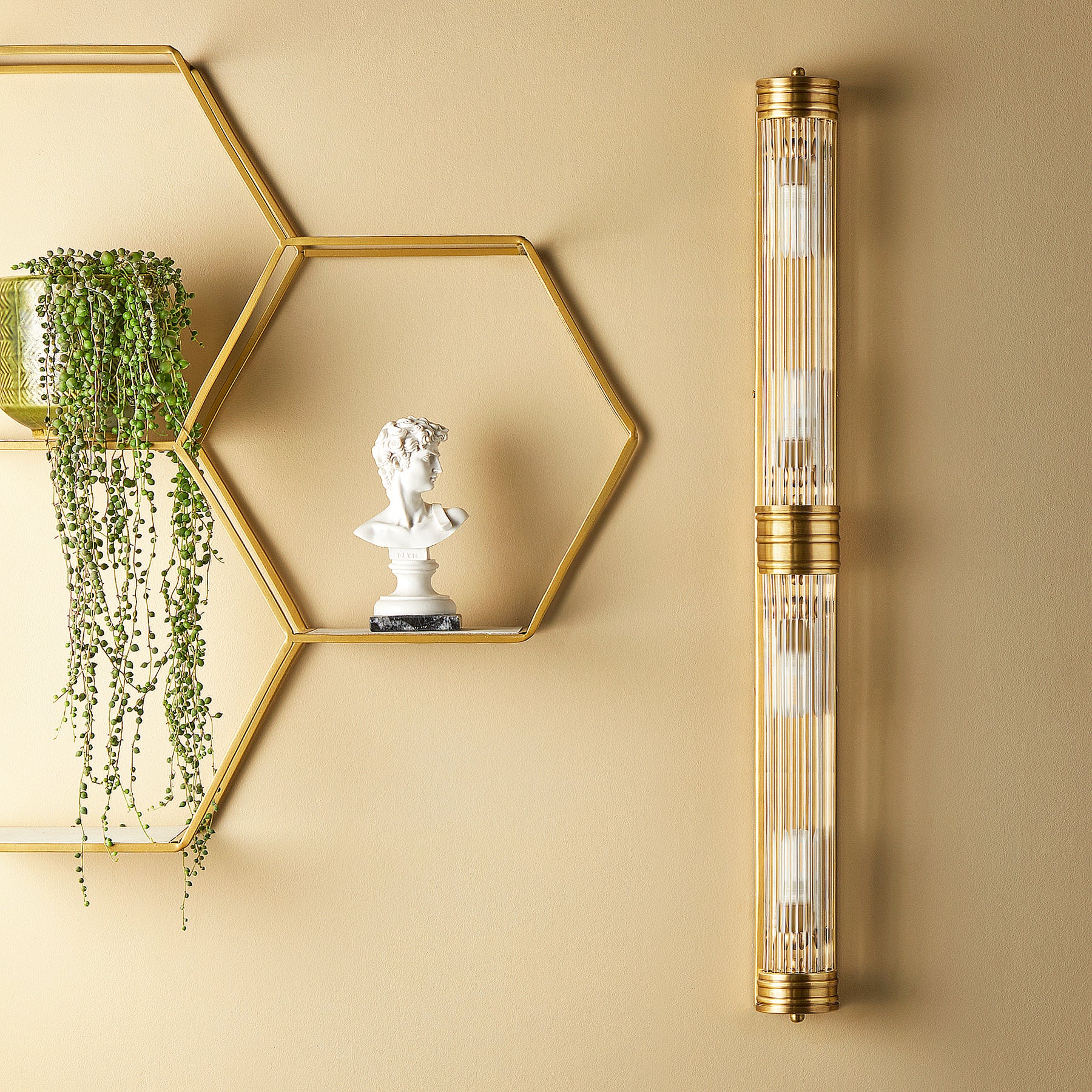 An extra-long take on an Art Deco classic with some nifty detailing which, we hope you will agree, makes for a right stunner. Brass with a nickel finish and glass rods. Take this long 'un into bathrooms if you fancy and position vertically or horizontally, the choice is yours!