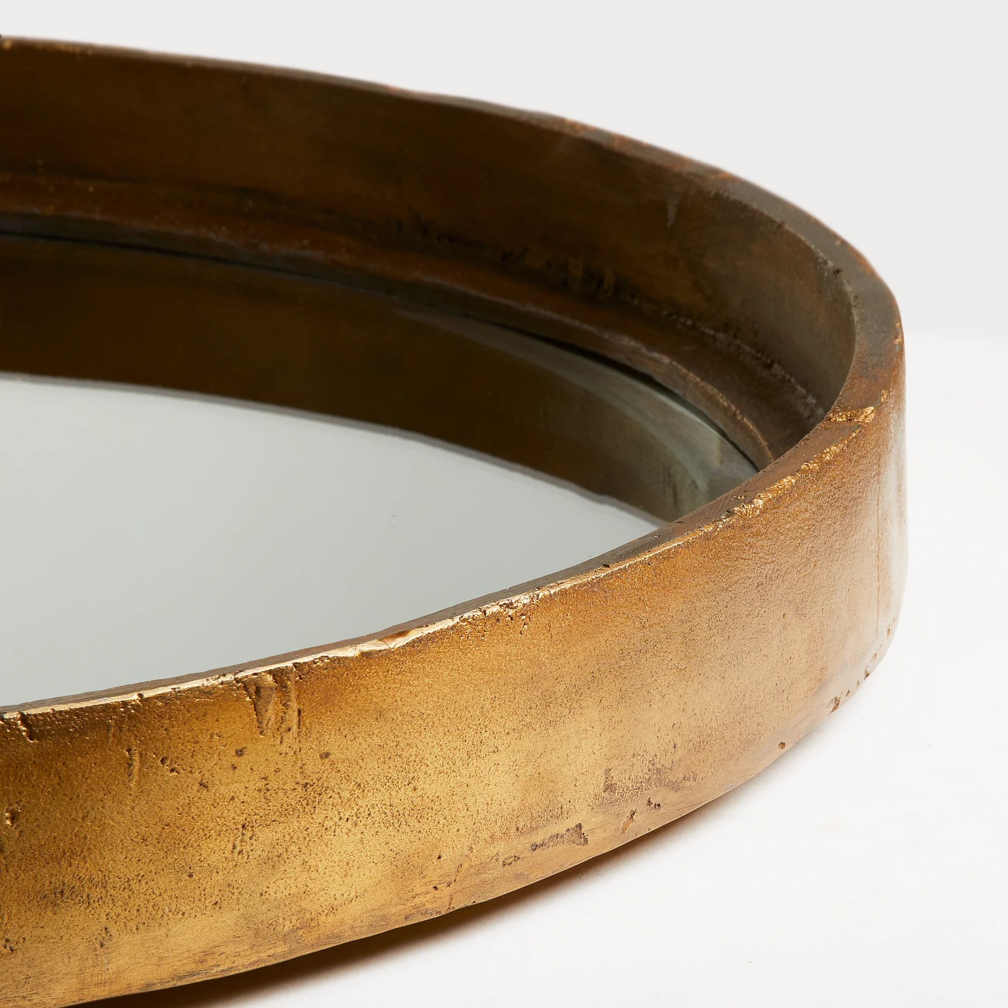 Our Feathers mirror is simple but majestic. The frame is made from a solid piece of cast aluminium (or aloominum if you're from across the pond) - and the beauty of this is that rather than a perfect, smooth and frankly a bit boring frame, you get little quirks and imperfections, that give the whole thing class and character. The mirror itself is round and bevelled - we bevel all our mirrors....it makes the difference. If mirrors could rule the world...