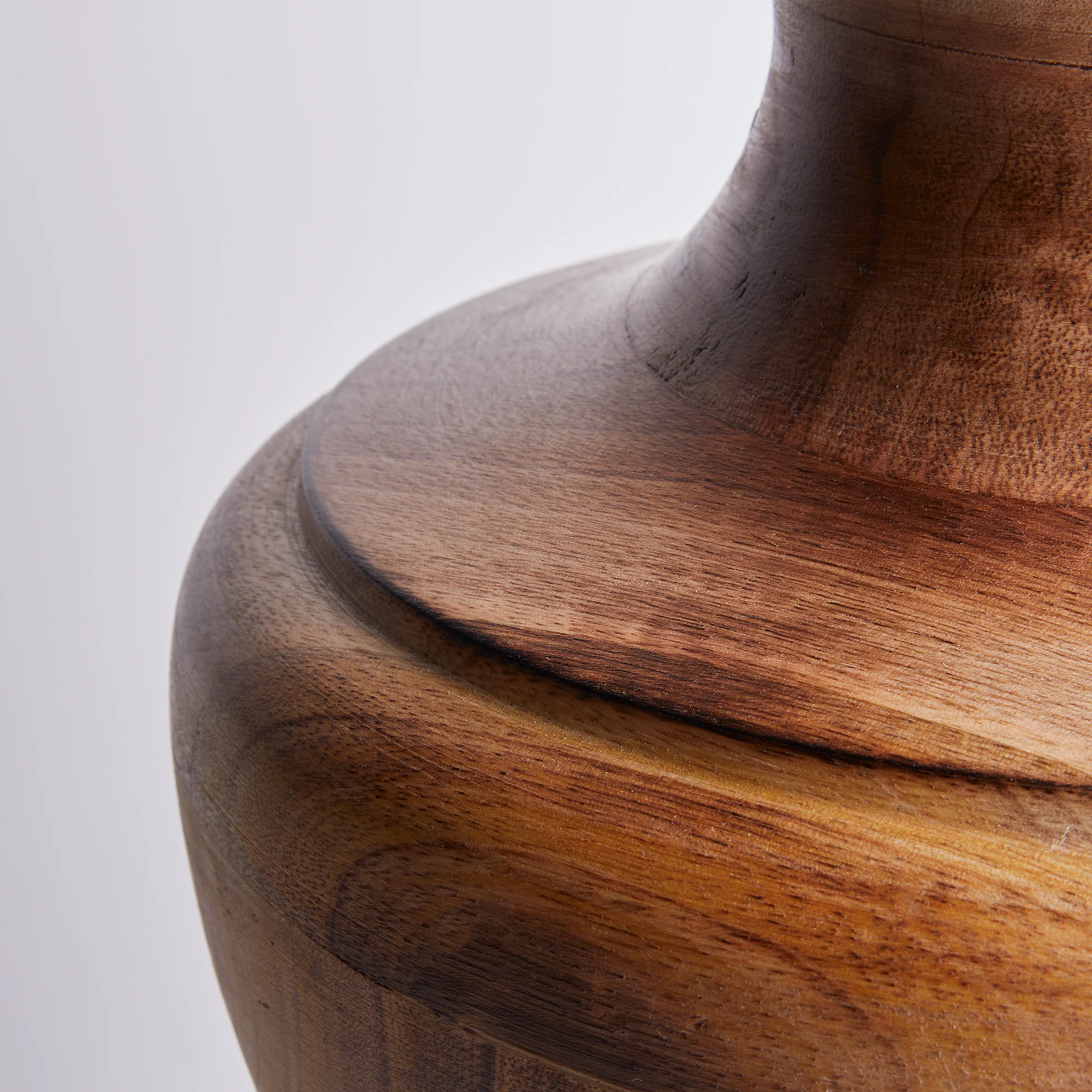 Curvaceous and shapely wooden turned table lamp in our burnt wood finish