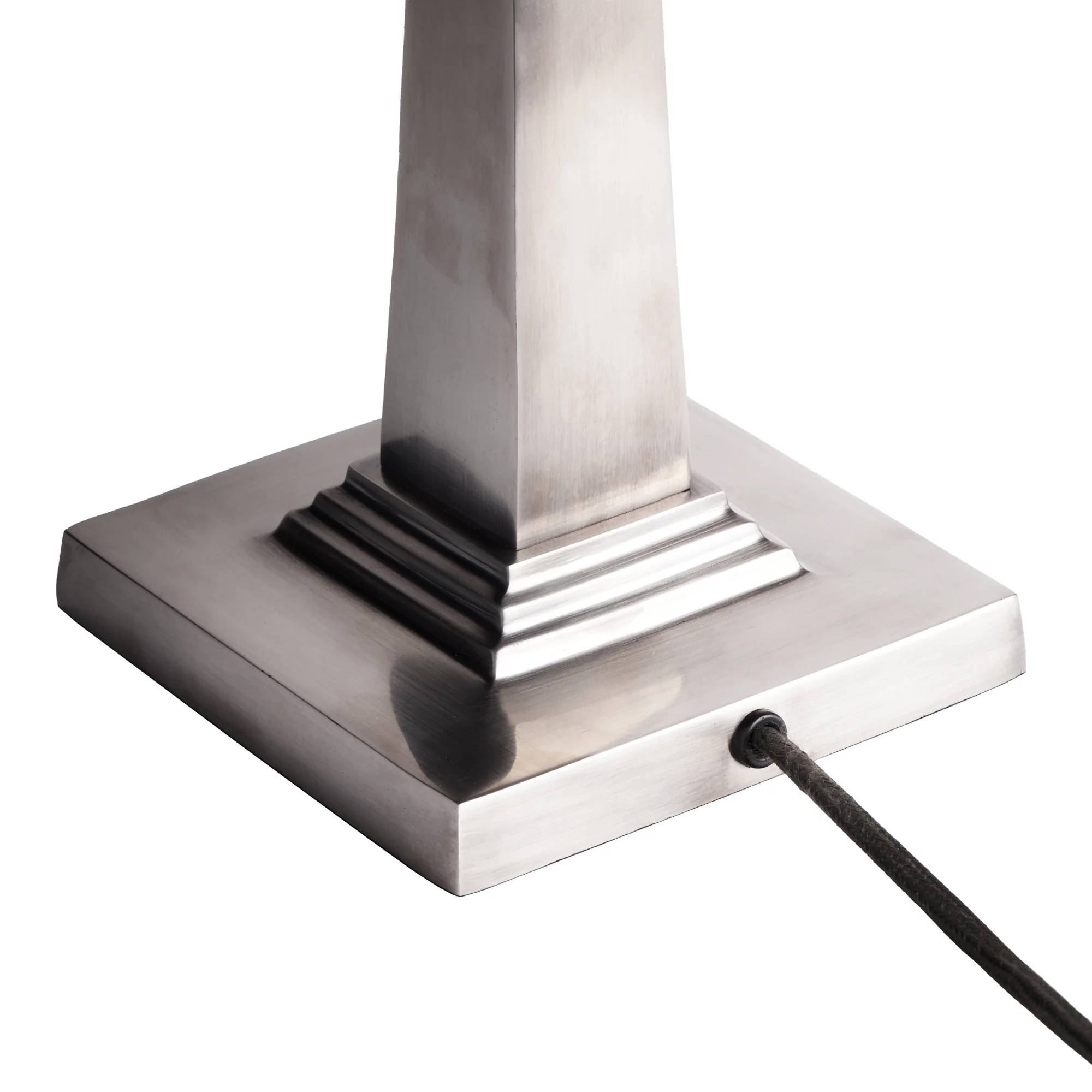 No, this does not look like exactly like a middle eastern Ziggurat temple, but the angled stepped base gives a suggestion of it. Most elegant and pleasing in its design, this lamp is at home pretty much anywhere.